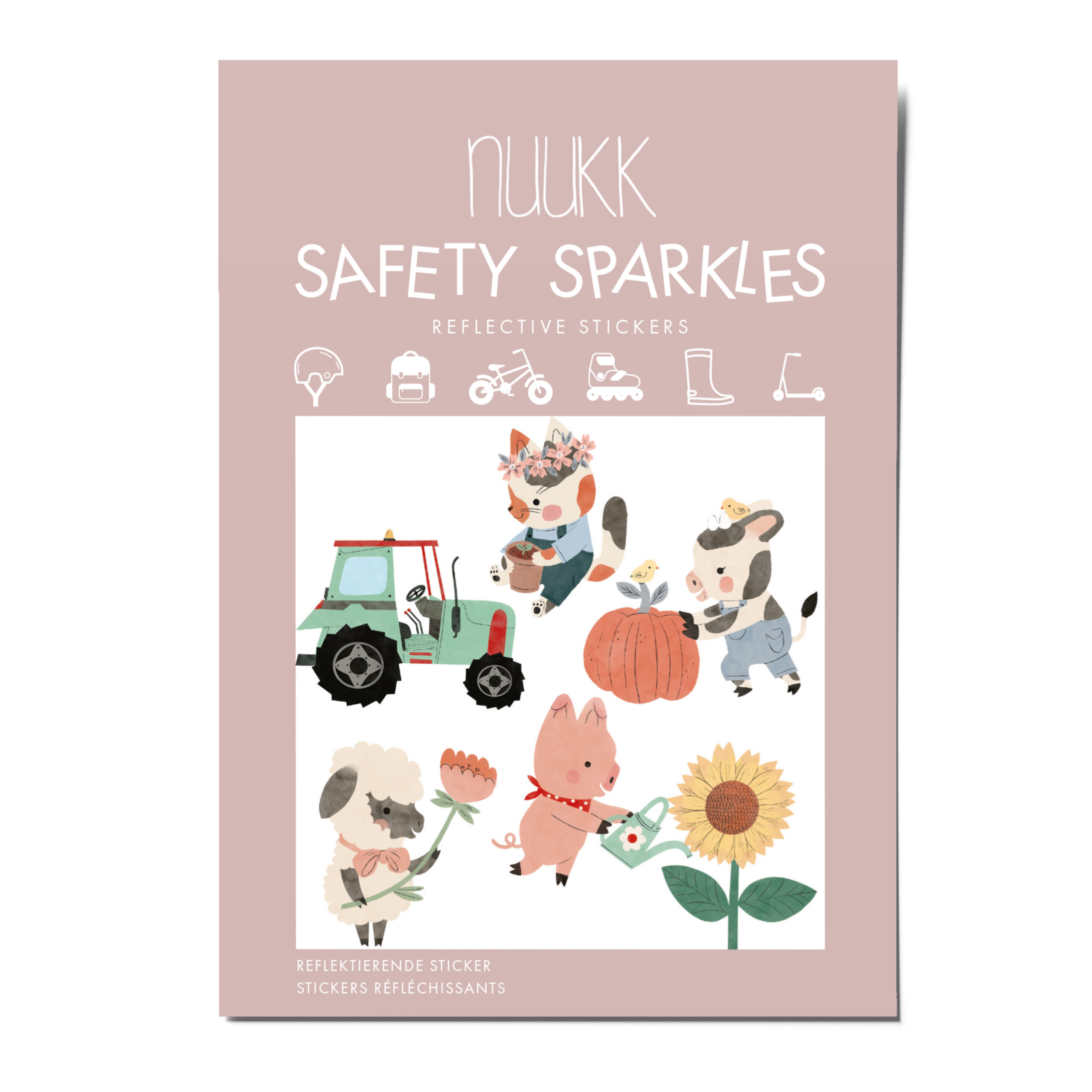 Unsere reflektierenden Bauernhof Sticker mit liebevollen Motiven wie Katze, Schwein, Sonnenblume, Lamm, Traktor und Kuh lassen Kinderaugen strahlen – und sorgen gleichzeitig für mehr Sicherheit im Straßenverkehr. Die reflektierenden Bauernhof Aufkleber bringen Roller, Fahrräder und Helme zum Leuchten, sobald es dämmert oder dunkel wird. So sind Kinder besser sichtbar unterwegs und Eltern können sich entspannt darauf verlassen, dass ihr Kind sicher unterwegs ist. Sicherheit kann spielerisch, schön und richtig cool sein.